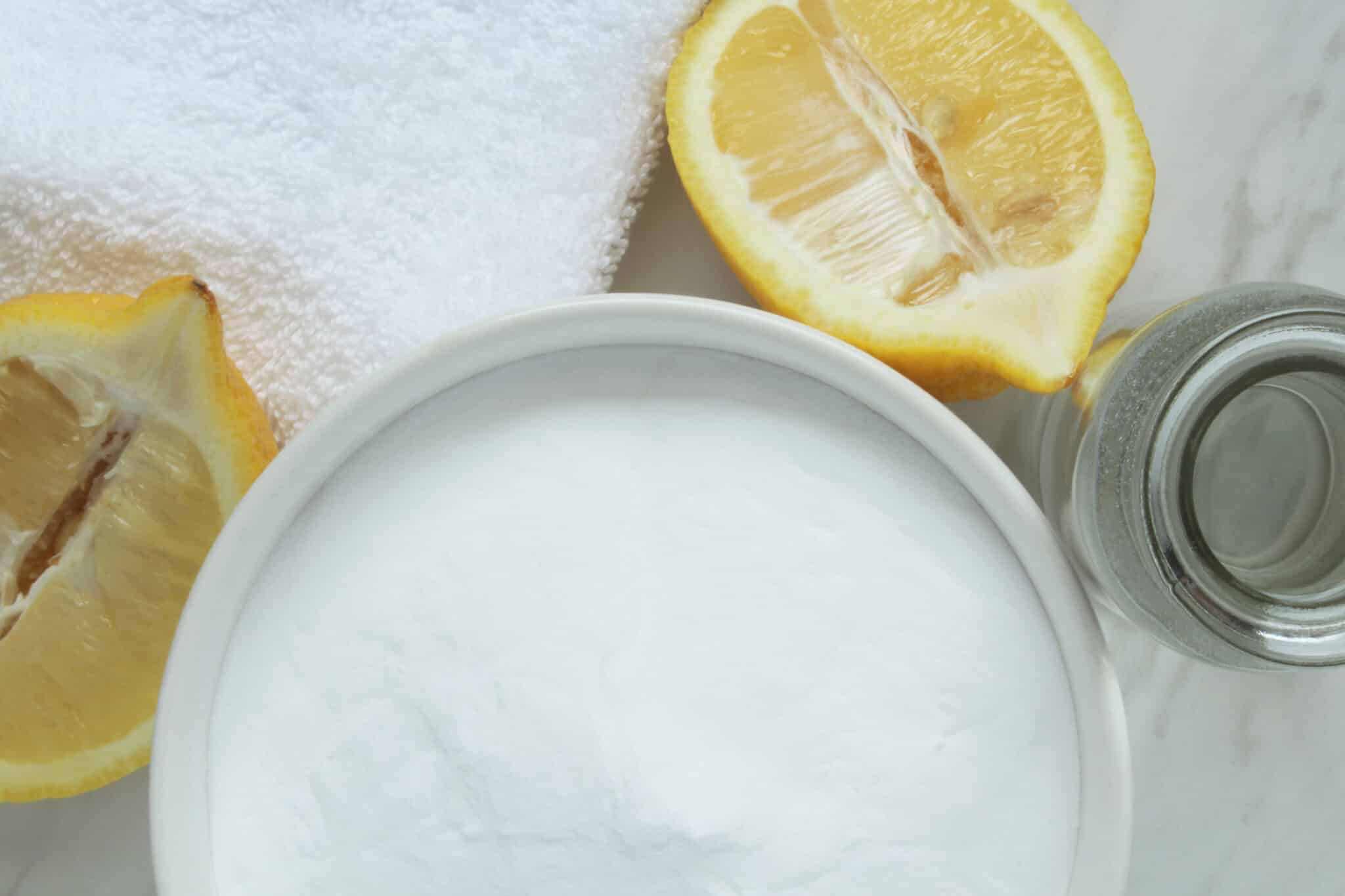 - Agua: Necesaria para diluir el vinagre y el jugo de limón y para hacer una pasta con el bicarbonato de sodio.
