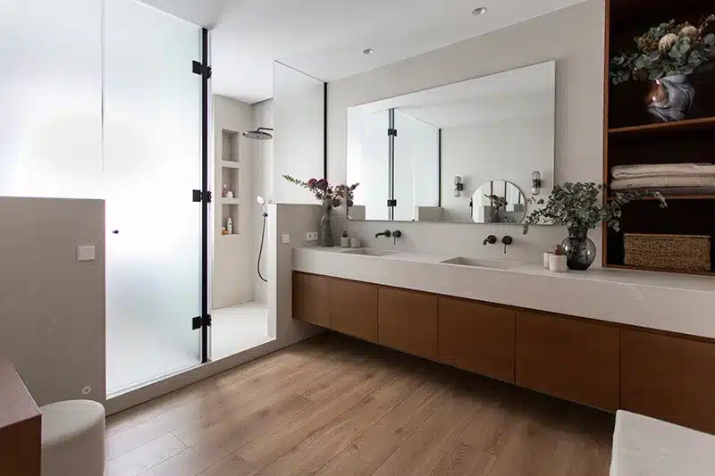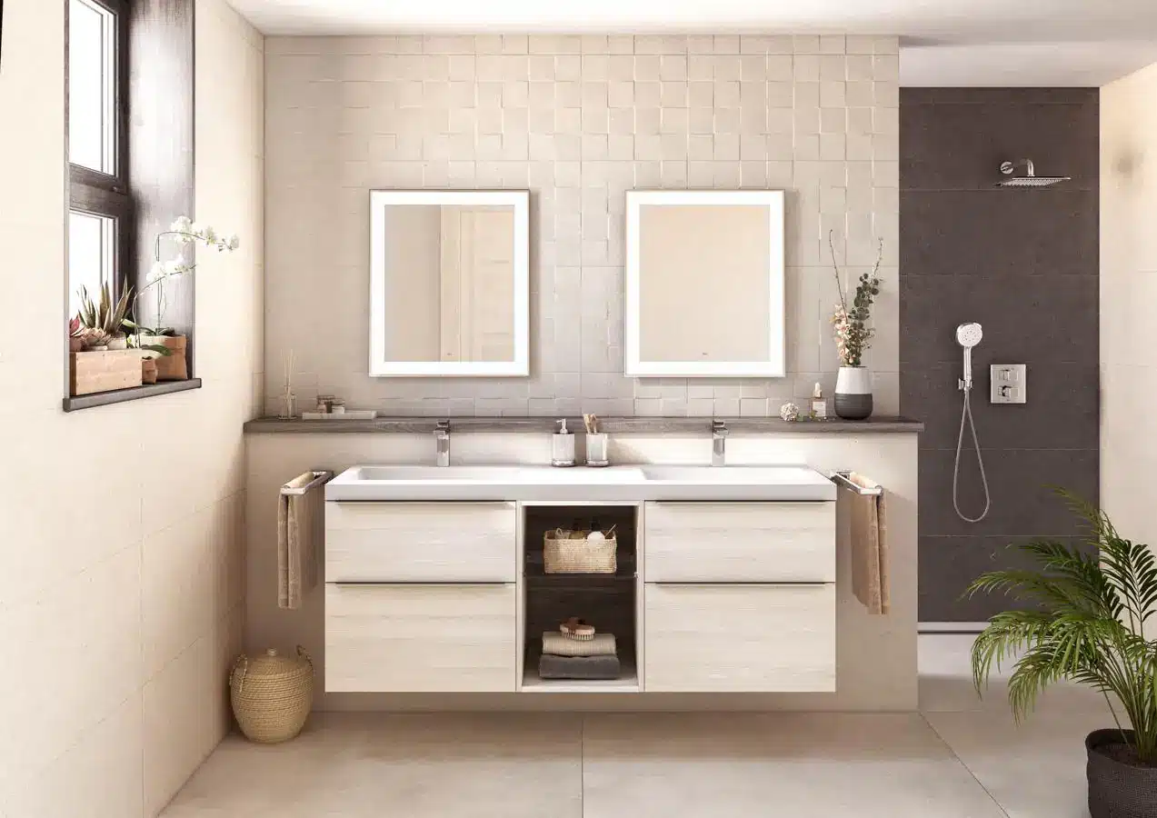 En resumen, un lavabo doble no solo optimiza el uso del baño compartido, sino que también eleva el nivel estético, convirtiendo el espacio en un entorno más sofisticado y práctico.