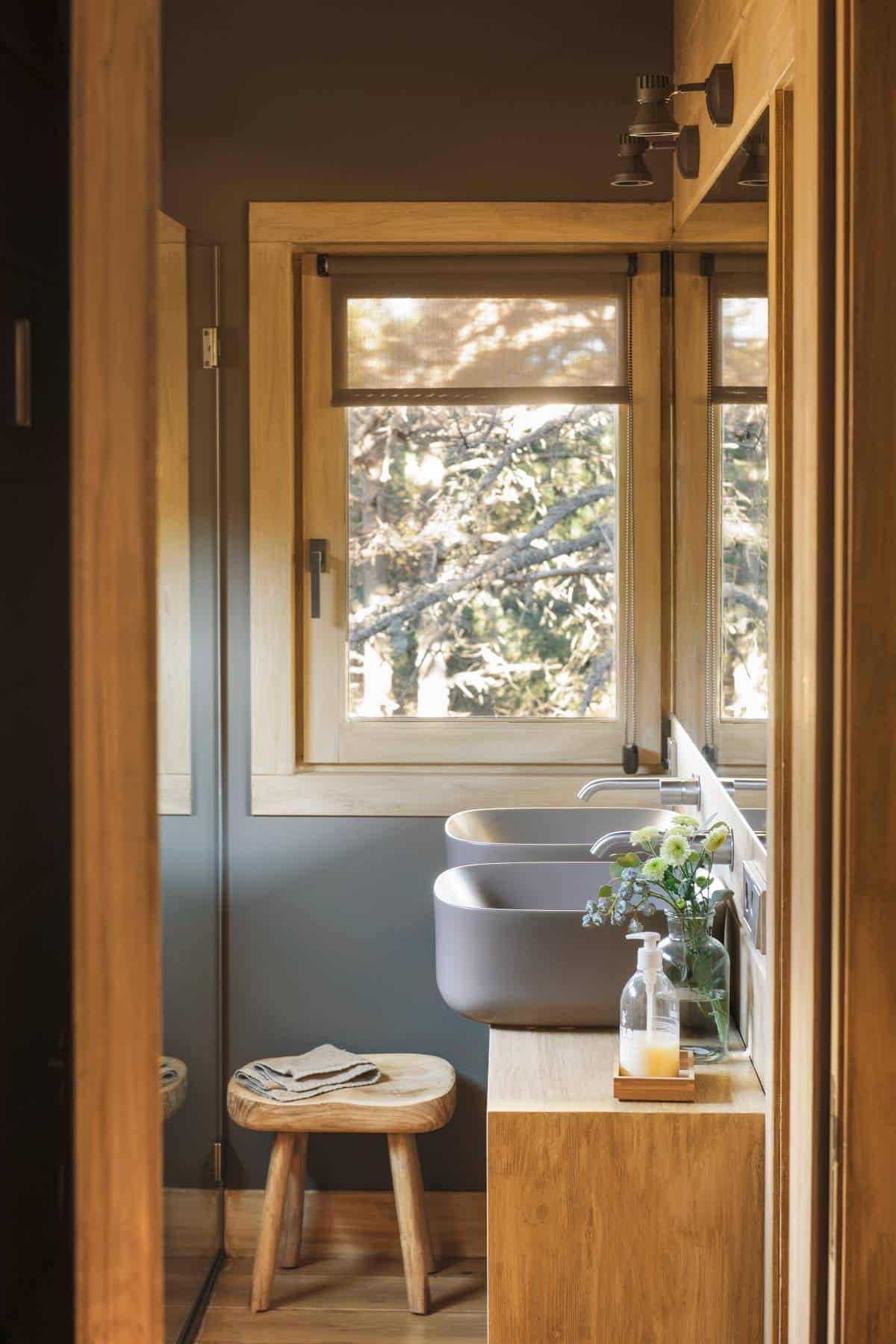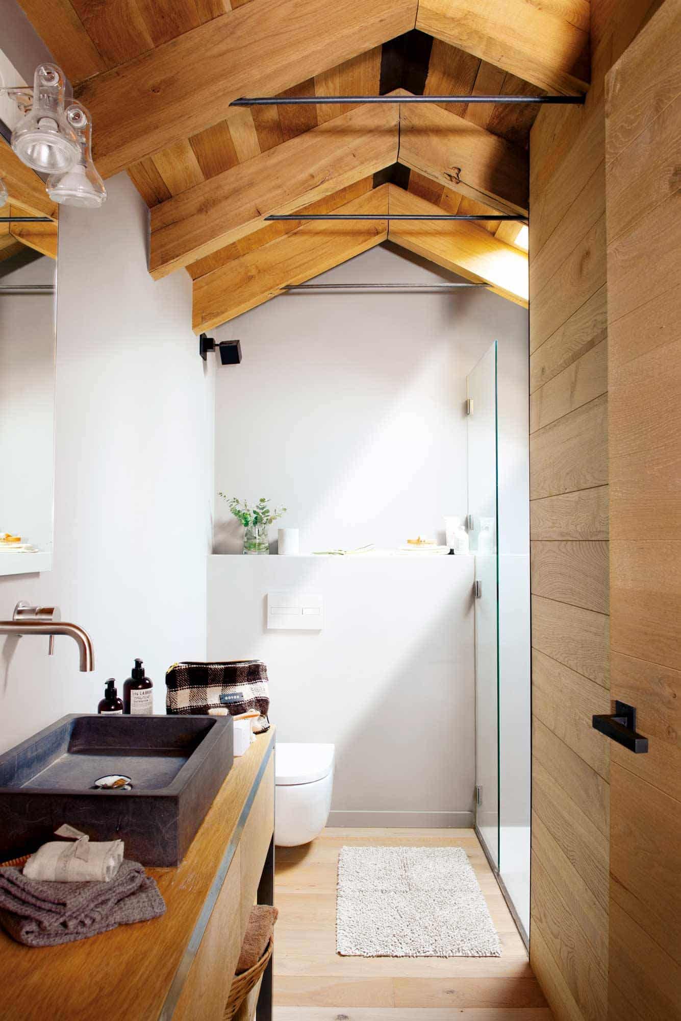 Elementos como el lavamanos refuerzan la esencia rústica, demostrando que, con la elección y combinación adecuada, incluso los espacios más reducidos pueden rebosar de carácter y estilo.