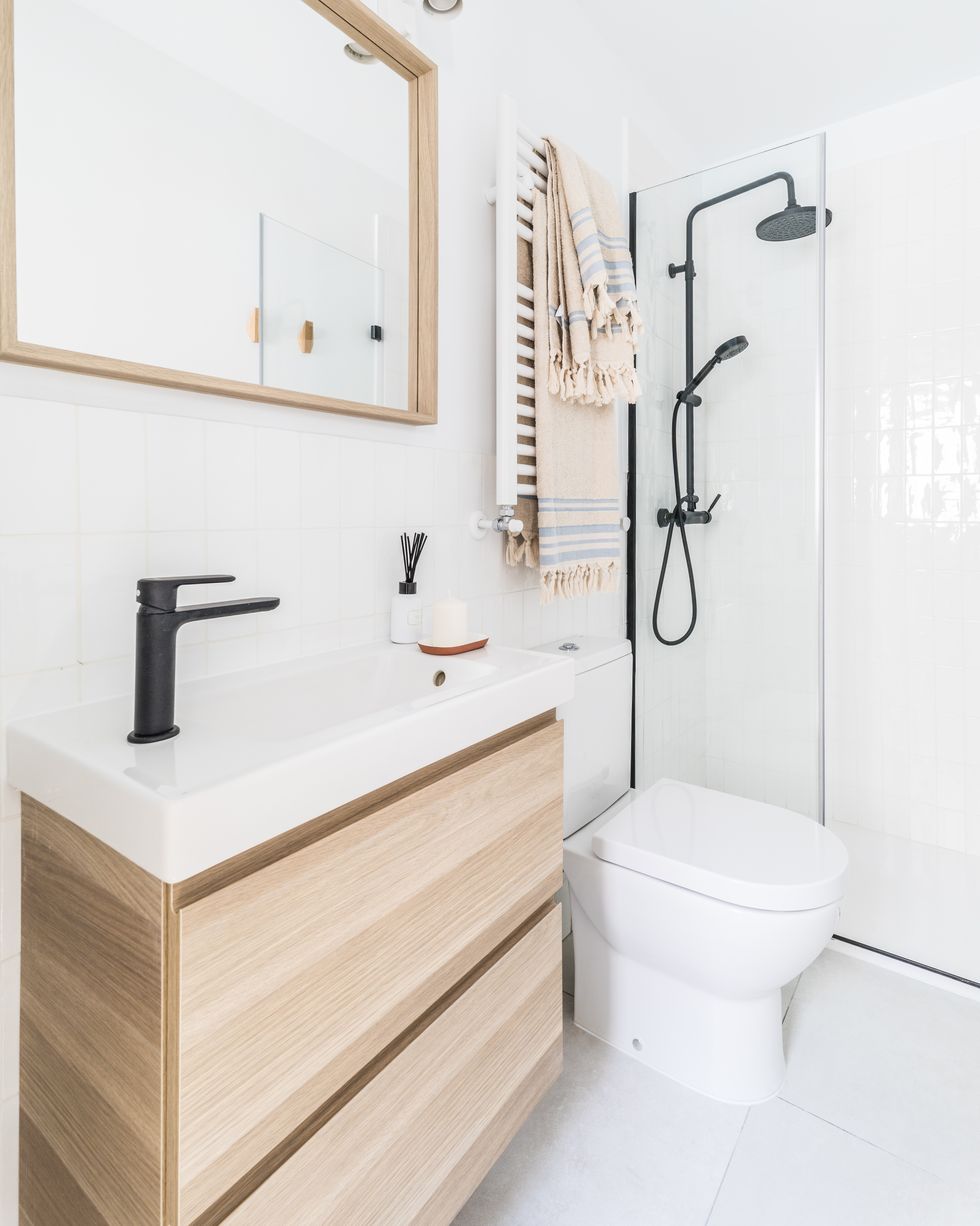 Este baño es la perfecta representación de lo sencillo, mini y muy moderno. Inspirado en el estilo japandi, fusiona influencias nórdicas con el minimalismo asiático.
