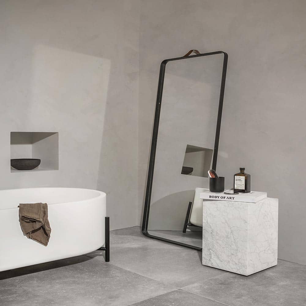 Su presencia, al no estar fija a la pared, aporta dinamismo y versatilidad al diseño del baño. Y al igual que otros espejos, el reflejo amplía visualmente el espacio, creando una sensación de mayor amplitud en lugares reducidos. La elección de un espejo de pie, además de ser práctica, infunde carácter y estilo al baño.